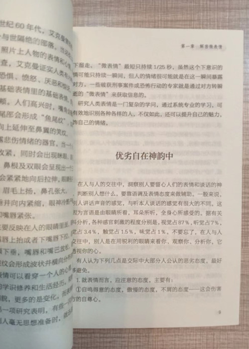 说到微表情,大多数人都会认为这只是面部五官的表情。其实,微表情不仅仅包括人的面部表情,人们的肢体表情、语言表情和行为表情也在微表情的范畴之内。 比如,一个人说话时不经意摸了摸鼻子,此时,他极有可能在撒谎。又或者,当你与他人交谈时,对方突然抖了抖双腿,如果不是对方有身体疾病,就说明他内心情绪有了变化,或是你所说的话刺激到了他,从而导致他出现了这种变化。 正是这些面部表情、肢体表情、语言表情和行为表情构成了马浩天著的《微表情心理学》的主体。
