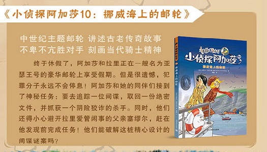 “小侦探阿加莎”系列是意大利知名儿童文学作家史蒂夫•史蒂文森的代表作,*辑包括《法老的诅咒》《孟加拉珍珠》《苏格兰国王的宝剑》《尼亚加拉瀑布盗窃案》《埃菲尔铁塔谋杀案》《百慕大三角的宝藏》《威尼斯总督的王冠》《肯尼亚草原上的偷猎者》《好莱坞疑案》《挪威海上的邮轮》等十本。该系列讲述了年仅十二岁阿加莎•米斯特里和哥哥拉里•米斯特里在环游世界的旅行中经历的种种冒险,有奇闻怪谈,有未解之谜,还有一桩桩扑朔迷离、悬疑离奇的案件……该系列构思独特,把环游世界和侦破案件结合在一起,不仅情节惊险刺激、扣人心弦,还包含许多地理、历史、人文知识,是非常值得阅读的儿童文学作品。