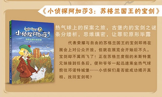 “小侦探阿加莎”系列是意大利知名儿童文学作家史蒂夫•史蒂文森的代表作,*辑包括《法老的诅咒》《孟加拉珍珠》《苏格兰国王的宝剑》《尼亚加拉瀑布盗窃案》《埃菲尔铁塔谋杀案》《百慕大三角的宝藏》《威尼斯总督的王冠》《肯尼亚草原上的偷猎者》《好莱坞疑案》《挪威海上的邮轮》等十本。该系列讲述了年仅十二岁阿加莎•米斯特里和哥哥拉里•米斯特里在环游世界的旅行中经历的种种冒险,有奇闻怪谈,有未解之谜,还有一桩桩扑朔迷离、悬疑离奇的案件……该系列构思独特,把环游世界和侦破案件结合在一起,不仅情节惊险刺激、扣人心弦,还包含许多地理、历史、人文知识,是非常值得阅读的儿童文学作品。
