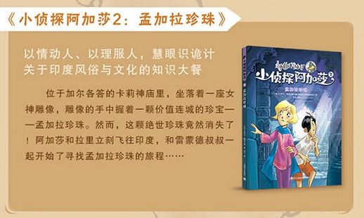 “小侦探阿加莎”系列是意大利知名儿童文学作家史蒂夫•史蒂文森的代表作,*辑包括《法老的诅咒》《孟加拉珍珠》《苏格兰国王的宝剑》《尼亚加拉瀑布盗窃案》《埃菲尔铁塔谋杀案》《百慕大三角的宝藏》《威尼斯总督的王冠》《肯尼亚草原上的偷猎者》《好莱坞疑案》《挪威海上的邮轮》等十本。该系列讲述了年仅十二岁阿加莎•米斯特里和哥哥拉里•米斯特里在环游世界的旅行中经历的种种冒险,有奇闻怪谈,有未解之谜,还有一桩桩扑朔迷离、悬疑离奇的案件……该系列构思独特,把环游世界和侦破案件结合在一起,不仅情节惊险刺激、扣人心弦,还包含许多地理、历史、人文知识,是非常值得阅读的儿童文学作品。
