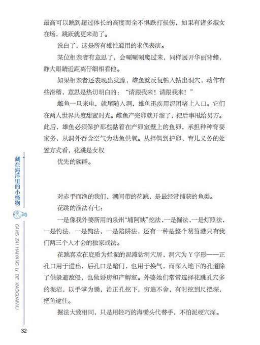 埒,鲎,花跳, 水针、 虾站沙蚕,还有龙咬仔、打铁婆、乖仔鱼这些有趣的海洋生物是藏在海洋里的小怪物,更是讨海少年心目中的神奇宝贝。