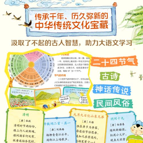 *为幼小衔接期的孩子打造的传统文化读物。符合语文课传统文化学习的要求。立足幼小衔接阶段的孩子的识字量和阅读喜好打造的学龄前桥梁书。 *故事为线索,串连1000多个知识点,涉及天文、地理、动植物、人文、气象、科技等多学科领域。 *图文内容贴近生活。运用大量场景图、情景图生动还原不同的风俗习惯、风土人情,激发孩子对生