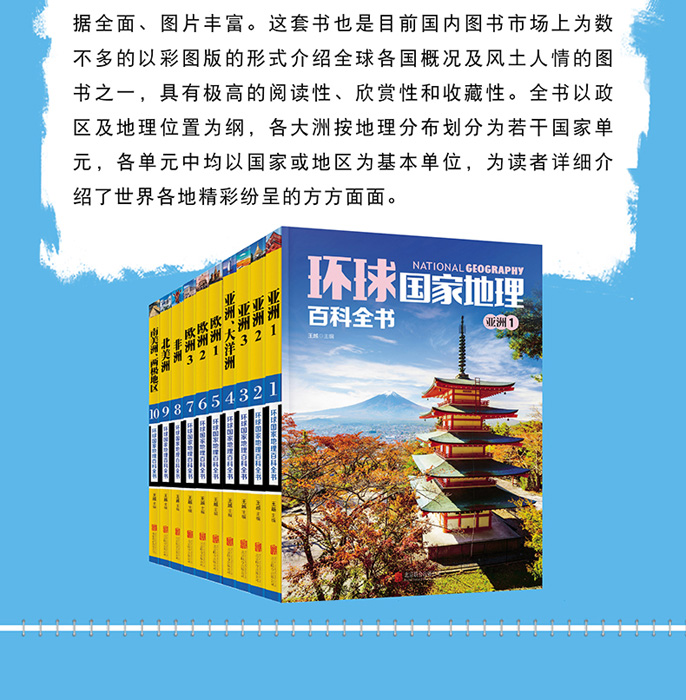 4.这套书也是目前国内图书市场上为数不多的以彩图版的形式介绍全球各国概况及风土人情的图书之一,具有极高的收藏性、阅读性和欣赏性。