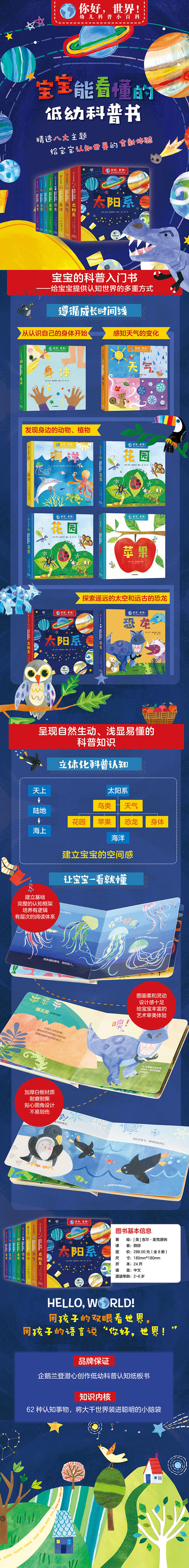 《你好,世界!幼儿科普小百科》Hello, World!精选八大主题,给宝宝认知世界的全新体验!浅白的语言,呈现自然生动、易懂的科普知识;拼贴画设计,色彩柔和灵动,给孩子不一样的审美体验。低幼科普领域体系完备、广受赞誉,美亚连年榜单推荐。