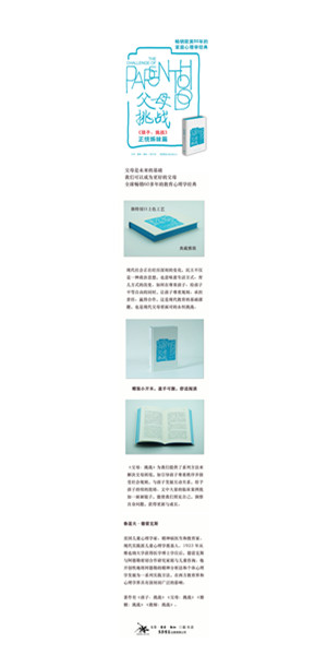 继“挑战三部曲”系列之一《孩子:挑战》 中译版销售逾20万册之后,三联生活书店原班人员引进推出同系列经典《父母:挑战》。