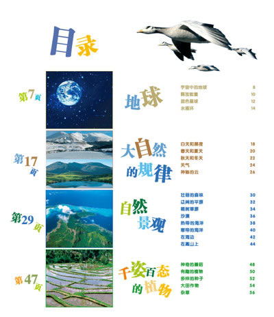 人类、动物和植物共同生活在大自然中,一起来进入自然的世界吧!我们喜欢居住在这个蓝色星球上,昼夜交替。阴晴冷暖,四季变化,万物更新,叶子黄了又绿,花儿开了又谢……大自然有它自身的规律,不同的气候造就了形态万千的自然景观。千姿百态的植物,争奇斗艳的花,各种各样的动物让我们的大自然世界变得更加美丽多彩。