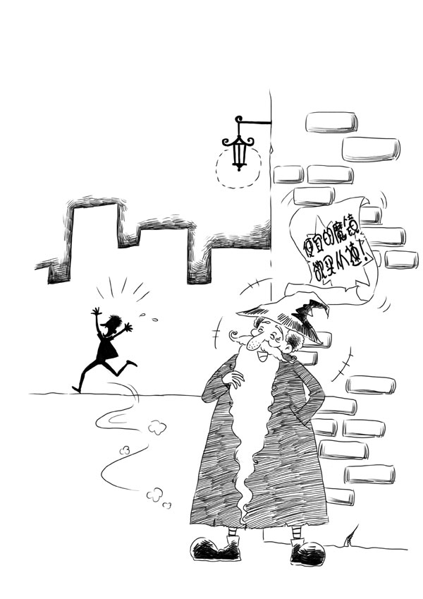 哈维尔感到很奇怪,从头到脚地打量了一番那个老爷爷。老爷爷看上去憨态可掬,目光敏锐,冲他笑着。他满头白发,胡须花白而且很长,几乎垂落到地上。他身穿红色的马褂,脚上蹬着蓝色的大鞋,手里拿着鲜绿色的宣传海报,这些都形成了鲜明的对比。