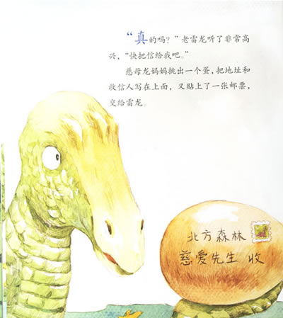 一段颇费周折的故事让人感动,一片浓浓的关爱之情让人为之动容。慈母龙妈妈以其特有的方式,体贴关爱着年老而孤单的雷龙,而雷龙也在送“信”的途中竭尽全力关爱着她的“信”。能够用心关爱别人的人,必定会得到许多幸福。