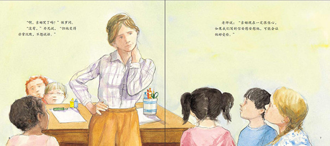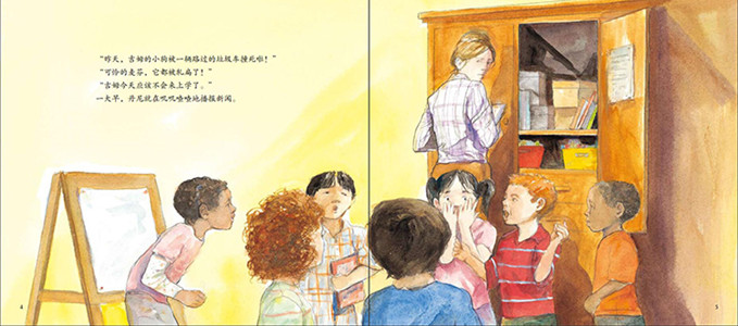 《我爱我的一年级:吉姆的小狗》记述了吉姆的小狗撞上了垃圾车并*终离开了吉姆,吉姆非常伤心。他不哭也不说话,在学校变得沉默忧郁,谁也不理,也不参加教学活动,甚至在同学试图劝慰他时对同学采取攻击行为。可爱可亲的老师理解吉姆的心情,请同学们给吉姆的时间来处理他的悲伤。放学后,同学保罗请吉姆一起吃披萨,并跟他谈论他的小狗。吉姆的眼泪终于流了下来,他打开心结,开始和同学分享他和小狗的故事。《我爱我的一年级:吉姆的小狗》直面如何帮助孩子面对死亡这个敏感话题,适合对孩子进行生命教育与情绪教育,同时书中老师对吉姆的抚慰也值得家长和低年级老师借鉴。《我爱我的一年级:吉姆的小狗》图画颜色明快,线条松散随意但人物表现得很传神,让读者在阅读文字的同时获得美的享受。