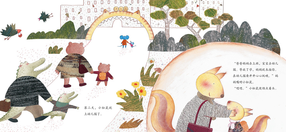 家长*担心的就是孩子会不会在幼儿园哭闹,因为孩子将面临与家人较长时间的分离,这个故事适合安抚孩子对入园的不安情绪,家长把幼儿园的真实情况描述得越详细,越能为孩子做好入园的心理建设。