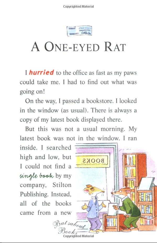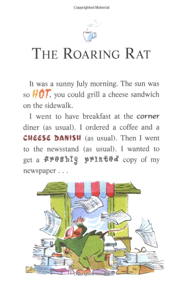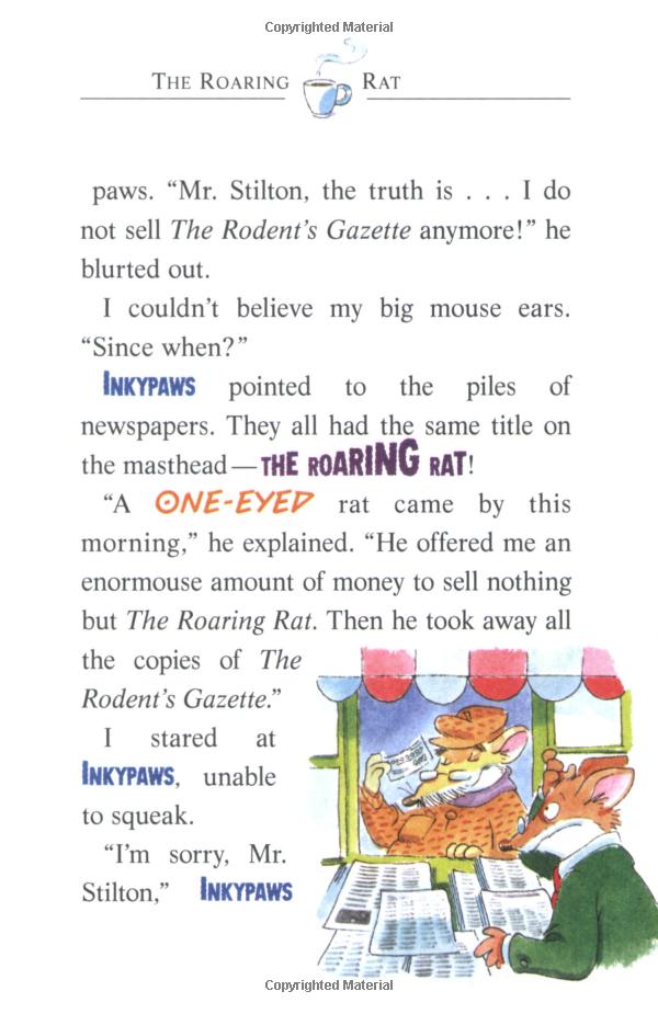 Cheesecake! A mysterious one-eyed rat was trying to steal The Rodent's Gazette from under my snout! I had to stop him -- but how? My business manager, Shif T. Paws, came up with a plan. He arranged for me to appear on a TV quiz show. If I won, the Gazette was safe. But if I lost -- SQUEAK! -- I had to give up my tail!