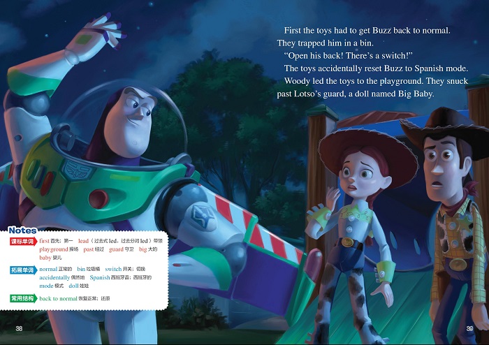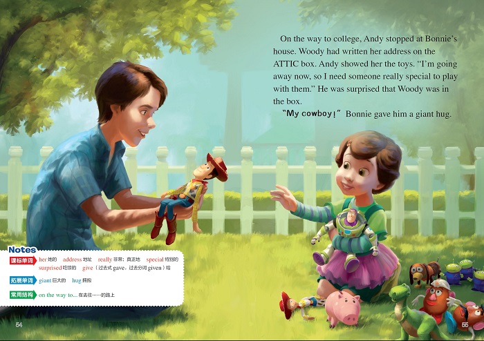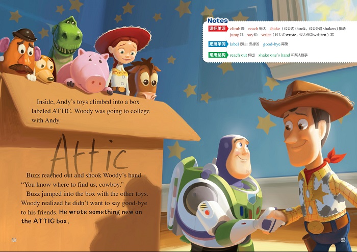 这是一本少儿英语书。故事内容为迪士尼动画片《玩具总动员3》的英文故事。故事讲述了安迪已经长大,准备离开家去上大学。玩具们以为自己要被丢弃,于是决定逃出去。他们阴差阳错地来到一个幼儿园,原本以为要开始美好的新生活,没想到却陷入了一场阴谋。胡迪能否带着伙伴们经历冒险后,成功回到安迪的身边?书中包含解释每页生词的Notes、区分课标词和拓展词的单词表、和每页对应的中文译文,并附有线上“常速版”“跟读版”音频,帮助孩子实现无障碍英语阅读,提升阅读能力。
