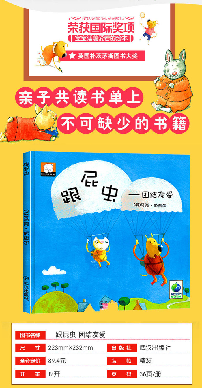 这是一本能给予当今独生孩子正能量的绘本。充满幻想,很符合孩子的年龄特征。故事讲述一只小猫咪老爱跟着狗狗,无论狗儿做什么,猫儿就做什么。狗狗开始对猫儿感到厌烦,觉得猫咪是个跟屁虫,小猫咪病了以后,狗狗忽然觉得没有了猫咪好孤单。绘本用简洁的语言,稚气的图画,赞美并让小读者懂得友谊的珍贵,懂得互相帮助,懂得学会分享。