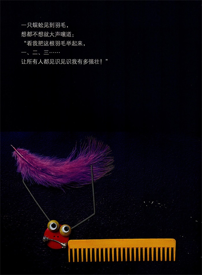 这本书讲述了一根神奇的紫色羽毛的奇妙旅程。在本书的后,这根羽毛从书中穿越到现实,来到孩子面前。该书的创作手法非常特别,以色列艺术家皮文将生活中的杂物拼接组合,创造出一个个动物形象,令人惊奇。本书对培养孩子的联想力、创造力非常有益。