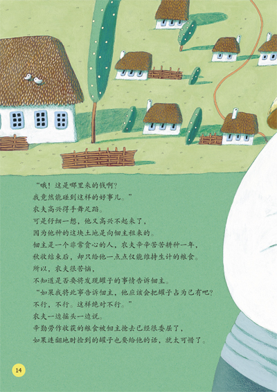 这是来自乌克兰的童话故事,本书为了表现有趣的故事内容,人物造型特别鲜明,并且使用蛋彩颜料和不透明水彩来着色。