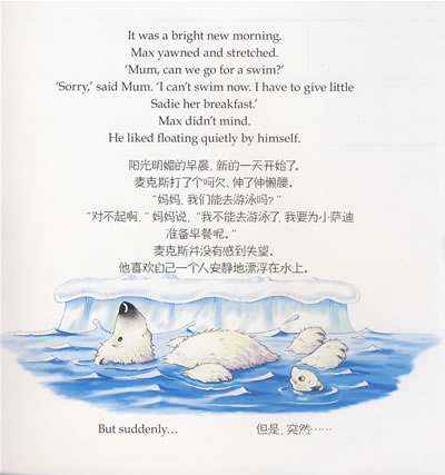 哗啦!麦克斯的雪洞被弄塌了。扑通!他不能安静地游泳了。