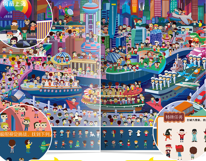 “那么大!地板书”系列是一套印刷精美的超级大开本游戏书,是适合1-8岁各个年龄段孩子游戏与阅读的神奇游戏大书,全幅570 X 415 mm。《美丽的中国》一册分首都北京、绚丽上海、梦想杭州、古都西安、花城广州、榕城福州(三坊七巷)、宝岛台湾、东方之珠、七彩云南九个章节,通过精美画卷予以展示,并让孩子们从中找寻目标物,以锻炼专注力与观察能力。
