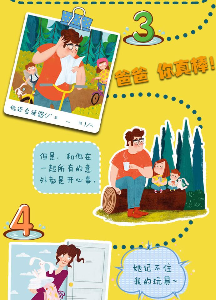 西班牙著名作家和插画师的经典之作。这部作品中的爸爸妈妈不再是只存在于孩子想象中的“超人”,而是更加符合大多数父母的真实形象,是平凡生活中的“血肉之躯”。孩子说:“我知道你是个冒失鬼,总是丢三落四、风风火火……但是即使这样,你也是我心中*棒的*。因为这本书告诉我,不完美的你们用陪伴爱着我。”这一套美好温馨的绘本,取材于作者与她三个孩子的真实生活,能够引领孩子和父母共同走入“毫无准备”且“状况百出”的小世界。你可能与书中的爸爸妈妈一样都是*次为人父母,做不好饭、收拾不好房间、搭不好帐篷、划不好船……但是这都不重要,因为无论对于你还是孩子,相处的时光总会是生命的恩赐,会带来当下的幸福以及日后回忆的无穷力量。