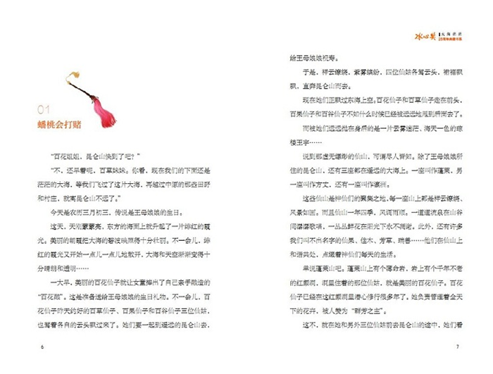 《大海茫茫》是广西师大出版社“冰心奖25周年典藏书系”推出的作品之一。本书是作者根据清代传奇小说《镜花缘》原作改写的奇幻小说。讲述了原本住在天上的百花仙子和众花仙女因受到玉帝的责罚被贬入人间,散落在人间各处,其中百花仙子转世成了唐敖的女儿。其父唐敖科考失意后,与多九公和林之洋二人,驾驶着一艘商船路经三十多个国家,见识了黑齿国、白民国、淑士国、两面国、犬封国等各种奇人异事、奇风异俗,并结识由十二名花仙转世的女子。唐敖不仅次第搭救流落海外的十二名花,并且最后与十二名花及百花仙子出世离尘,入小蓬莱成仙的故事。