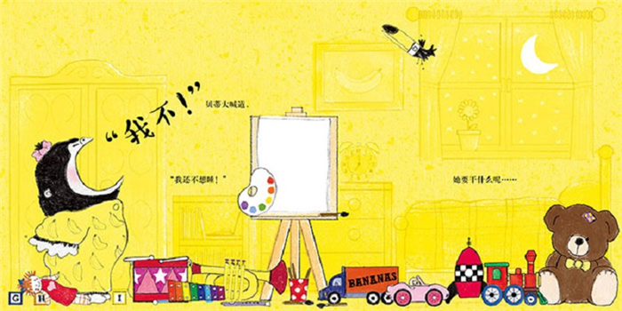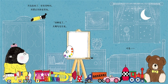 睡觉时间到,可贝蒂还要吹笛子,“嘟嘟!嘟嘟!”;画恐龙,“刷!刷!”;玩汽车“哔!哔!”……就算哈欠连天,困得眼睛都睁不开,贝蒂还是不想去睡觉!