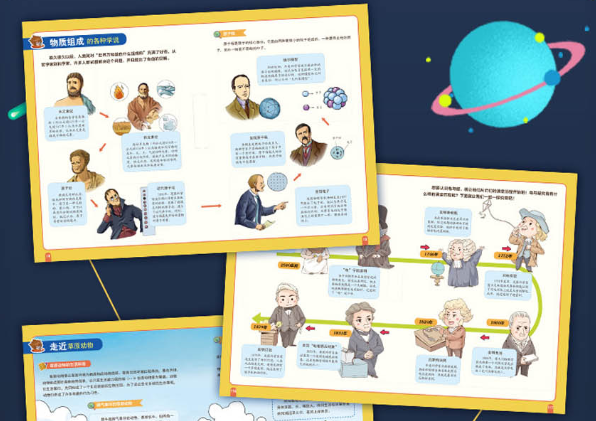 《科学超有趣》作为一套画面精致、风格鲜明的原创漫画,在有趣的冒险故事中,生动描述了科学知识等内容,做到了知识性、娱乐性和故事性的完美结合,该系列图书让读者捧腹大笑的同时,毫无压力地学习知识,对科学充满热爱,帮助孩子建立通识学习的宏观概念,萌发科学梦想。 书中涉及的科学知识,既有孩子平时日常生活中常见的问题,也有大千世界的种种奇妙现象,能够激发孩子强烈的好奇心。同时本套科普书充分发挥了漫画的优势,将各种科学知识巧妙的融入一个个有趣的故事情节中,能够让孩子在轻松有趣的阅读氛围中学习到科学知识,提升学习能力和思维能力。每本书种还配有若干个知识点,对科学知识进行了丰富的补充、拓展和解释,也是孩子们感兴趣的话题,有利于开拓孩子的眼界,激发他们了解世界、探索世界的兴趣。 《科学超有趣》以鲜活、童趣、知识链逻辑性强的特点,展现在我国青少年的面前,无疑让人眼前一亮。内容丰富,画面优美,让科普阅读变得轻松有趣。书中引人入胜的漫画小故事,实用有趣的科普大讲解,培养小读者的科学思维和创新能力。它或许可以成为一把为孩子打开科学之门的钥匙,让他们走进科学,亲近科学。 《科学超有趣:物理》 生活中到处都蕴藏着物理的奥秘,我们去探究物理来解释生活中的各种现象,也利用物理去进行各种发明创造。在学习和生活中,你可能会有这样的疑问:为什么苹果熟透了之后会从树上掉下来?为什么乒乓球瘪了,用开水烫一下就会立马恢复?为什么阿基米德会说“给我一个支点,我就能撑起整个地球!”?万有引力、热胀冷缩、杠杆原理……这些物理词语都是什么意思?它们蕴含了什么样的生活哲理?在读过这本神奇的物理书之后,你脑海中的疑问将会被——解开。 《科学超有趣:宇宙》 从地球仰望天空,天上的那些奇妙景象是如何形成的?地球之外的世界是什么样子的?宇宙中蕴含着怎样的规律?你知道月球上为什么没有声音吗?地球的形状是圆形的吗?月亮上真有嫦娥和玉兔吗?流星为什么会从天上掉下来?为什么会有流星雨?水星上有好多好多水吗?广袤的宇宙中充满着无穷无尽的奥秘,你想知道宇宙中都有哪些秘密吗?让我们跟着小野人一起去探索神秘的宇宙吧!小朋友,你准备好了吗?带上漫画锦囊,让我们出发吧! 《科学超有趣:动物》 在大自然里,动物虽然随处可见,但小朋友对它们背后的故事却并不是多么了解。在动物世界里,永远有让孩子们追问个不停的疑问和秘密!这,正是动物的奥妙所在。其实,每一个可爱的动物身上,几乎都有一段新鲜又好玩的故事。本书主要向小朋友们介绍了千奇百怪的鱼、哺乳动物、神奇的鸟儿和恐龙时代。在这个充满无穷奥秘的动物王国里,小朋友们是否知道:鱼为什么适合生活在水里?电鱼为什么会放电?比目鱼为什么被称为“海底魔法师”?孔雀为什么会开屏?负鼠究竟是如何装死的?有的恐龙为什么会有两个大脑?恐龙为什么会灭绝?……想知道答案吗?那就打开这本有趣又好玩的动物漫画书吧,它会一一为你解答并带给你更多的动物趣闻。 《科学超有趣:昆虫》 在探索昆虫世界的过程中,我们经常会有这样的疑问。比如,什么样的虫子是昆虫?昆虫为什么都那么小?蜻蜓是怎么飞起来的?苍蝇、蚊子为什么能够飞得那么快?小昆虫没有鼻子,它们是用什么来呼吸的呢?萤火虫为什么会发光?蟋蟀的声音是从哪里发出的?蝉的幼虫要在地下生活很多年吗?蜘蛛为什么会织网,它的肚子里有丝线吗?小朋友,你是否对这些问题感到好奇呢?接下来,请翻开你手中的这本书,让我们和小野人一起来揭开昆虫世界的秘密吧! 《科学超有趣:地理》 火山、地震、台风、龙卷风……这些地理词汇对孩子充满了诱惑力,也是孩子们经常能听到或者谈论的话题。对于学习地理,孩子有兴趣只是一个美好的开始,孩子们更需要一本能够自己看得懂、有趣、轻松解决他们疑问的地理书。这本书就是专为孩子编绘的地理知识漫画书。不论是关于地球的宏观知识,还是各种地质地貌;不论是可怕的地质灾害,还是地球上的能源宝藏……丰富的地理的知识尽在书里的故事中。 《科学超有趣:人体》 身体对我们的生命活动是非常重要的,每个小朋友都要学会爱护自己的身体。要想爱护我们的身体,首先,我们应该先从认识和了解人体开始!在阅读本书之前,先请小朋友回答几个问题:我们的心脏为什么会一直跳个不停?食管为什么被称为“山崩高发区”?胃蛋白酶为什么那么爱贪吃?人体一共有多少块骨头?“人体的司令部”指的是什么?我们为什么会发声?为什么乘电梯时人们喜欢向上看?……小朋友们如果想知道答案的话,那就去这本有趣的人体漫画书中慢慢寻找答案吧! 《科学超有趣:数学》 很多小朋友都觉得数学不仅高深难懂,而且晦涩枯燥,对学习数学提不起兴趣。其实,数学是非常有趣的。每一个数学知识都是一个有趣的故事。为什么阿拉伯数字叫“印度数字”会更贴切?0~9这十个数字都有哪些含义?看似不起眼的小数点究竟有什么重要意义?倍数和分数有哪些奇妙的应用……本书用细腻清新的画风将一个个融合了数学知识的风趣故事表现出来,希望每位翻开这本书的小读者,都能轻松的读故事、快乐的学数学。 《科学超有趣:化学》 小朋友,当你一觉醒来,看到这个大千世界里各种各样的东西,是不是想过
