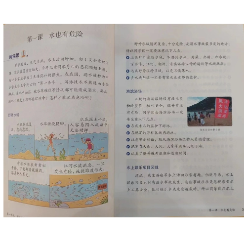 人民教育出版社出版的“生命安全与健康教育丛书”是根据2021年特制定《生命安全与健康教育进中小学课程教材指南》编著的,包含了《指南》中提到的5大领域及30个核心要点。在此基础上,又梳理了2000多个知识点,从中选取重点常见知识点,能够全面囊括生活中所遇到安全问题与生长健康等问题。 该系列图书有以下特色: ☆知识全面 ☆科学权威 ☆栏目丰富 ☆真实实用 ☆趣味互动 ☆轻松自主 三年级上册包括四大单元内容:单元“我们的耳朵”是通过介绍耳朵的构造、耳朵的重要性,以及哪些常见的坏习惯会损伤听力,让孩子认识耳朵,了解耳朵,并能够保护耳朵,通过知识拓展,让孩子了解爱耳日的由来,以及如果耳朵进了异物的处理方法等,简单实用。第二单元“防范气道异物”,这个单元实用性很强,气道异物是儿童或老年人极易发生的意外,这一单元先从科学角度解释气道异物堵塞的定一,容易引起气道异物堵塞的食物以及如何预防气道异物,最后介绍了海姆立克急救法的概念及针对不同年龄的人的施救方法。第三单元“出行安全”,主要分三部分,一是在公共场所乘坐滚梯电梯等的注意事项,以及人流拥挤时该如何保护自己的方法,二是乘坐火车时要注意的事项以及如果火车发生事故该如何逃生的方法,三是坐飞机的安全常识,以及乘坐飞机时若发生事故该如何逃生。第四单元“消防安全”通过常见的火灾隐患引入具体的居家常备消防宝贝,简单的救火知识以及灭火器的使用方法,逃生要点等,本单元内容十分实用,在关键时刻能够帮助孩子正确逃生。