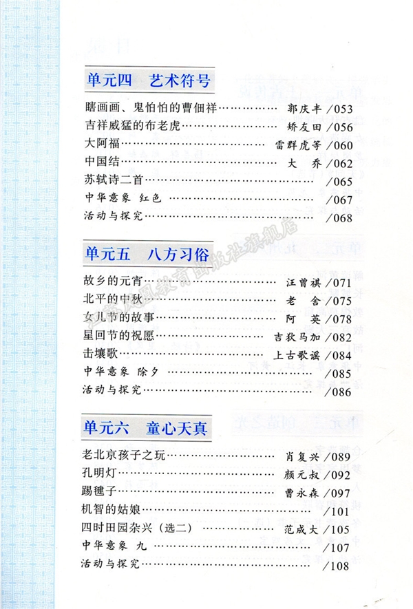 教材围绕民族文化、家国情怀、社会关爱、人格修养,根据