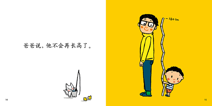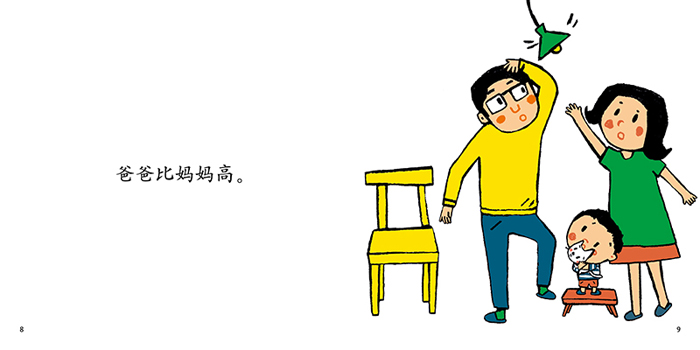 橱比桌子高,桌子比椅子高,椅子比……爸爸比妈妈高,妈妈比我高,我比……咦?小猫变成了“*”,它是怎么做到呢?这是一个有趣的故事。小男孩对事物的高低发生了兴趣,沉浸在与家具、家人比高低的乐趣之中。可是,一只调皮的小猫却打破常规,把自己变成了“*”。