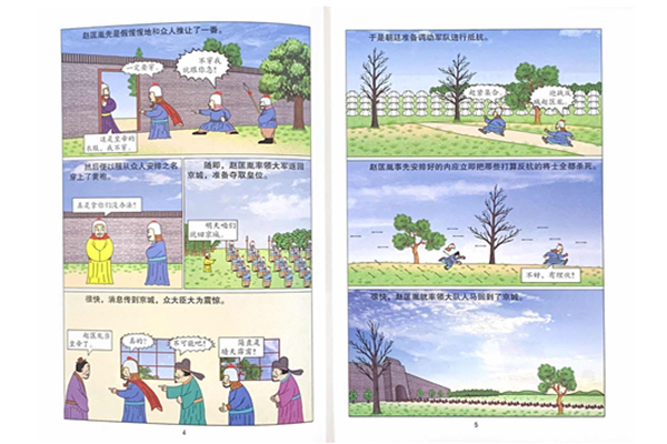 《漫画中国通史故事》是一套漫画版的中国通史,共10册,分别是《远古至春秋》《战国至秦》《西汉至东汉》《三国至东晋》《南北朝》《隋至五代十国》《宋辽金》《元》《明》及《清》。《远古至春秋》从传说中的盘古开天地开始讲起,一直讲到勾践卧薪尝胆;《战国至秦》从三家分晋开始讲起,一直讲到楚汉相争;《西汉至东汉》从叔孙通定朝仪开始讲起,一直讲到曹魏代汉;《三国至东晋》从夷陵之战开始讲起,一直讲到刘裕代晋;《南北朝》从拓跋珪建北魏开始讲起,一直讲到陈朝内讧;《隋至五代十国》从隋军灭陈开始讲起,一直讲到高平之战;《宋辽金》从陈桥兵变开始讲起,一直讲到崖山决战;《元》从铁木真统一蒙古开始讲起,一直讲到元朝灭亡;《明》从痛打茹太素开始讲起,一直讲到李闯王进北京;《清》从李自成溃败开始讲起,一直讲到清帝退位,共200多个小故事,通过轻松幽默的讲述,让读者对从远古到清代的中国历史有一个全面的了解。