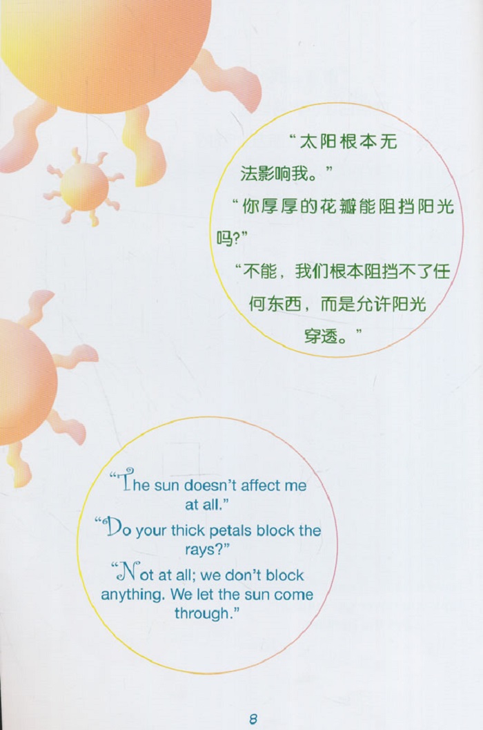 《冈特生态童书》是一套以环保为主题、面向5-10岁儿童的科普知识绘本。在书中,作者以当前地球生态面临的诸多现实问题为蓝本,设计出了一个个让孩子们好奇的话题,并将这些有趣的故事用一幅幅生动的卡通画形式进行呈现。本书由雪绒花和龙胆草的对话展开讨论:龙胆草一直羡慕雪绒花毛绒绒的、白色的花瓣,他想了解雪绒花是如何保护自己的。雪绒花在整个对话中都是有自知之明和自信的。对于奥地利赋予雪绒花的荣誉以及在百老汇音乐剧中起重要作用,她感到很荣幸。她不自夸,也不说太多自己的细节。面对龙胆草的疑惑,雪绒花愿意分享她是如何保护自己免受紫外线过度照射的。作为回报,龙胆草分享了自己的主要优势在根上,它含有一种能用于治疗消化疾病的很好的药。