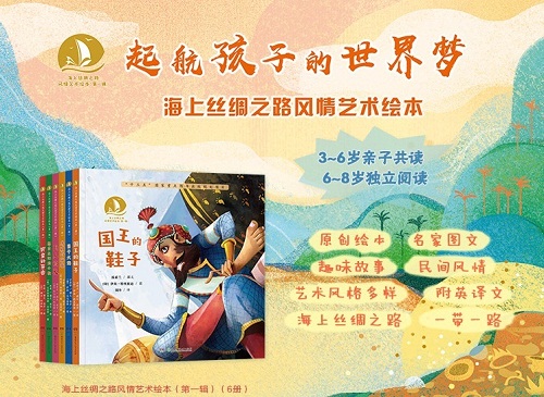 “海上丝绸之路”风情艺术绘本*辑6册,包括《国王的鞋子》《巨人的火》《想当太阳的小狗》《鳄鱼的牙齿》《乌鸦和麻雀》《舀干大海》。