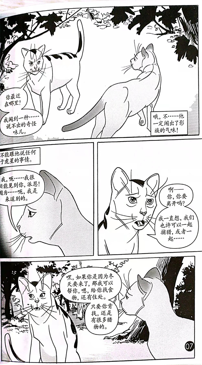 这是一套以猫为主角的漫画故事书,共三册,分别是《进入森林》《逃出森林》《返回族群》。本套书的主角是一只名叫莎夏的母猫,她在一次被迫离家出走后,进入了森林,结识了影族族长虎星。她渴望加入虎星的森林族群,但是她渐渐发现虎星并不可信,她离开虎星,开始了艰辛的流浪生涯。最后,她决定回到森林族群,将自己的孩子训练成可以在任何环境中生存的猫武士。