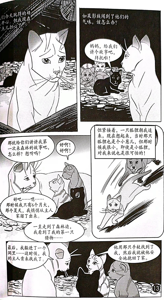这是一套以猫为主角的漫画故事书,共三册,分别是《进入森林》《逃出森林》《返回族群》。本套书的主角是一只名叫莎夏的母猫,她在一次被迫离家出走后,进入了森林,结识了影族族长虎星。她渴望加入虎星的森林族群,但是她渐渐发现虎星并不可信,她离开虎星,开始了艰辛的流浪生涯。最后,她决定回到森林族群,将自己的孩子训练成可以在任何环境中生存的猫武士。