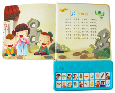 能听、能看、能玩,最新颖的国学启蒙读物。心理学家研究表明:人的记忆力和理解力在人成长过程中的发展是不同步的。一个人的记忆力发展是自零岁开始,一至三岁既有显著的发展,幼儿期是人的记忆发展的黄金时期。背诵是他们的天性,是他们所喜欢和擅长的,如果在这个阶段让孩子多背点传统文化的经典著作和篇目,可以作为一种终身去消化、理解,收益的文化储备。再次,幼儿接受经典教育,接受传统文化的熏陶,在潜移默化之中,吸收五千年古老文明的精髓,使他养成良好的性格与气质。
