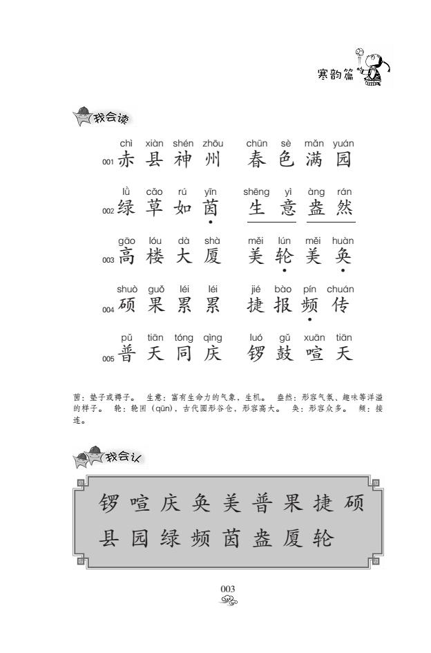 附送的小册子上不要让学生注音,遇到不熟的字,可在小册子和正文中标注后反复诵读。