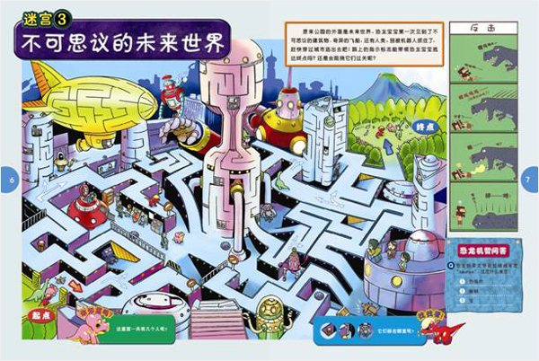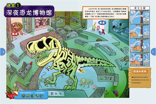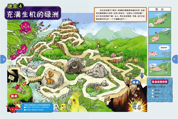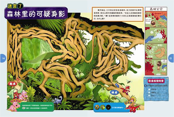 一本特别有趣的恐龙书,把恐龙的知识都变成了很好玩的故事。我自己很喜欢恐龙,也很开心和儿子一起玩迷宫游戏。儿子才五岁,特别喜欢图画,如果一本书有迷宫,他就会特别喜欢。