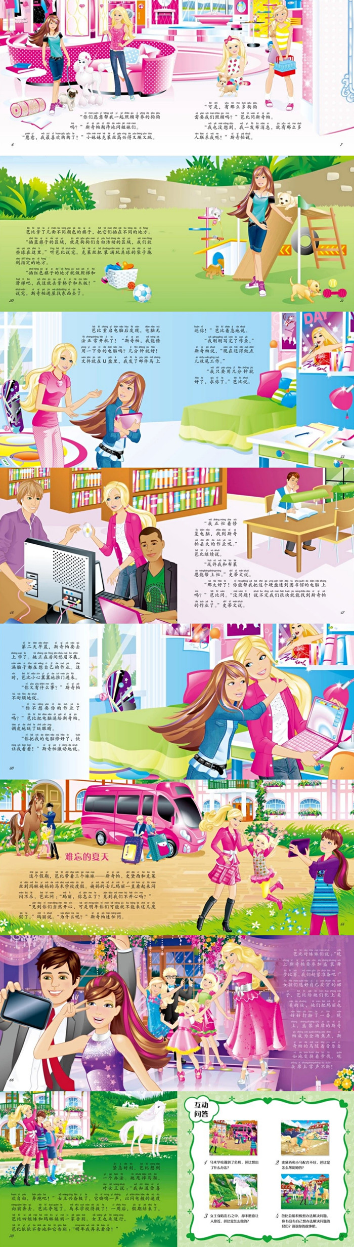 儿童故事绘本。史琦是个音乐爱好者,也是电子产品的热衷者。她想买最新的音乐软件,但零花钱却不够。她想出了一个好办法,自己开家宠物旅馆,帮邻居们照顾宠物,赚钱买音乐软件。姐妹们都很赞成她的想法,她们一起努力,把宠物旅馆办得有声有色,宠物们过得很开心,她们也收获了很多惊喜。史乐的姨妈是个时装设计师,她正在为时装发布会忙碌,但时装杂志觉得她没有为青少年设计服装,姨妈很苦恼。史乐联合两个好朋友,设计了一系列青少年服饰,大受好评,她们也十分有成就感。《我会积极想办法》讲述如何积极开动脑筋,主动寻求解决问题的办法。