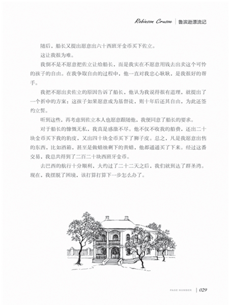 鲁滨孙在航海时不幸遇难,漂流到了荒无人烟的孤岛上。从此,他与世隔绝,依靠自己的双手制造工具、建造房屋、开荒种地、饲养、制作衣服和陶器,还从吃人的野人手中救出了“星期五”……他用了近30年的时间,把荒岛改造成了一个富饶的地方,并把人类的文明传承到了那里。后,他又奇迹般地回到了欧洲。苦难把他锻炼得更聪明更有创造力,勤奋努力使他变成了巨富。故事非常耐人寻味。你想知道鲁滨孙是怎样在荒无人烟的小岛上度过30年的,那就请静下心来认真品读吧。