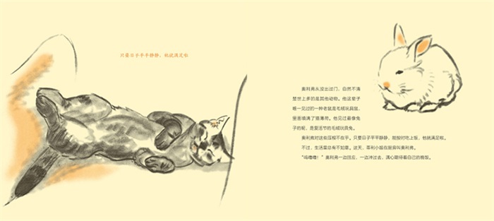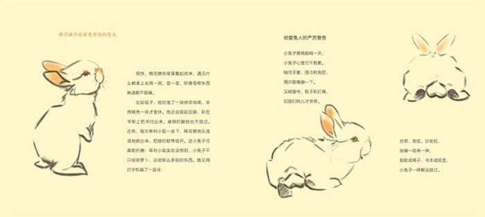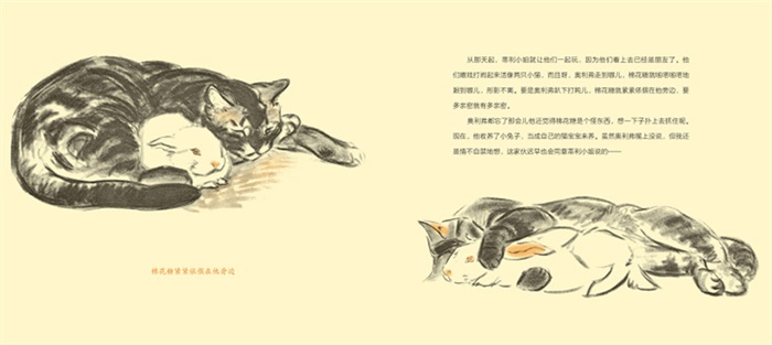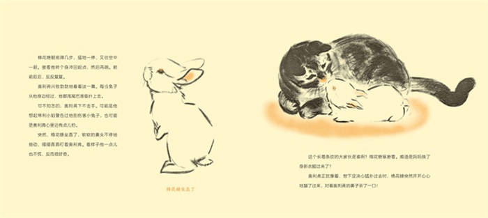 像是一只猫和一只兔子的素描本,没有其他角色,没有其他背景,配上文字后却述说了一个有关爱的大命题。——李一慢