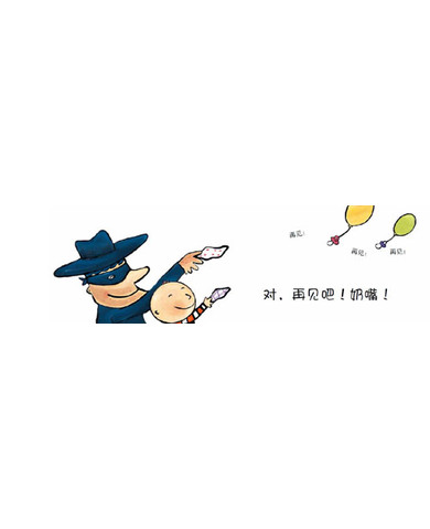 有一个大人嘴巴里还有奶嘴,宝宝觉得这个大人很奇怪,但就不知道他是哪里奇怪,原来是他嘴里的奶嘴很奇怪。大人把奶嘴拿走了,他们都跟奶嘴说再见了,因为他们都是大孩子了。
