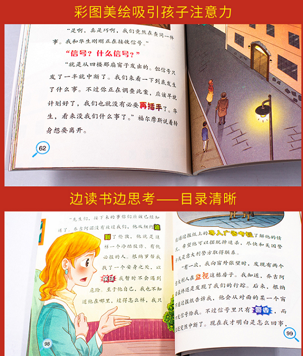 《神探福尔摩斯》是一套专门为7~12岁青少年量身打造的侦探小说,全书共10册,他是英国著名侦探小说家阿瑟·柯南·道尔创作的小说集,也是世界文坛中脍炙人口的探案佳作,距今已有百年历史,它开启了侦探小说历史的黄金时代,先后被译成57种语言出版,风靡全球,畅销世界各地,备受读者的推崇和喜爱,是侦探推理小说中的经典之作。《福尔摩斯探案集》被广大探案迷誉为推理小说中的“圣经”,在漫长的时间洗礼中,福尔摩斯已经成为了人们心中神探的代名词。……