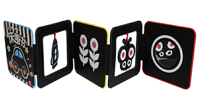 这是一本多功能的,用于给0~24个月的宝宝在婴儿床内,或者任何能看见的地方,做视觉激发的床围书。通过黑白或者色彩鲜艳、对比鲜明的图案,有效的刺激宝宝视觉神经,促进视力发展。采用EVA海绵制作,安全环保,可以给宝宝放心使用,妈妈更安心。《黑白图形》使用黑白两色,形成鲜明的色彩对比,适用于0~12个月的宝宝,可以对他们的视觉神经进行有效的刺激。