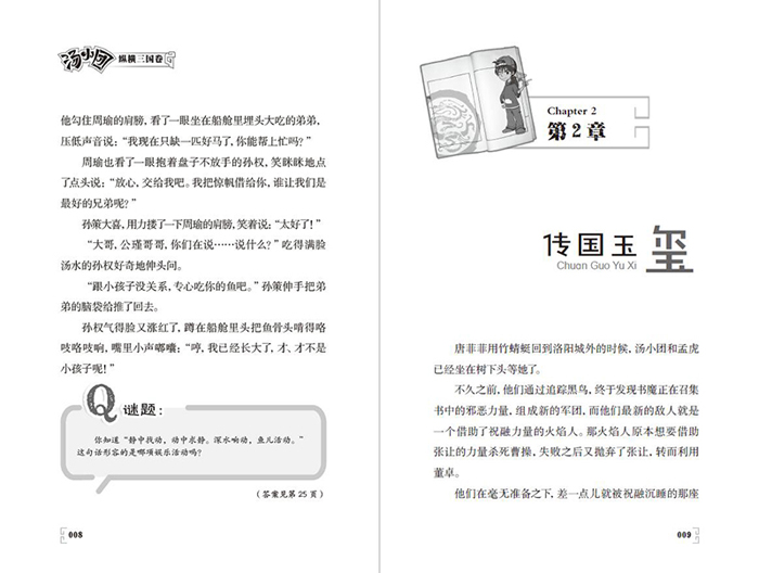背负着保护历史,集齐七把封印钥匙彻底,彻底消灭书魔的重大任务,汤小团、孟虎和唐菲菲又要开始新的冒险历程了。他们在东周的世界中得到了第一把封印钥匙天子剑,又在两汉的世界中找回了第二把封印钥匙神农琴。寻找钥匙的过程中,他们也成功地保护了这两段历史没有被书魔改变。现在,他们要进入中国历史上一个崩溃混乱,却又英雄辈出的时代——三国。这里不是演义小说的世界,而是真实的历史。他们将进入黄巾之乱肆虐的东汉帝国,亲眼目睹光武帝刘秀建立起来的东汉的灭亡。从东汉末年的董卓进京,到火烧洛阳,从不可一世的袁绍落败官渡,到渴望统一中国的曹操被赤壁的熊熊大火烧断了前路。一直到东吴孙权大帝的崛起,还有转战一生的刘备最终进蜀建立了蜀汉政权。从此中华大地三足鼎立。已经失败过两次的书魔对第三把钥匙——祝融弩势在必得,而混乱不堪的三国时代也隐藏着无数个足以让书魔利用与成功的改变历史的机会。当那些叱咤风云的英雄人物活生生地出现在汤小团三人的面前,当他们面对真实历史的残酷,面对三位帝王以及他们身边无数英雄人物的坚持与梦想,曾经坚定的他们也变得动摇甚至迷失。统一全国真的是唯一的目标吗?如果三国注定统一,那么那些英勇的武将,智慧的谋士又在努力些什么呢?统一又给中国带来了什么?与三国相比,三家归晋以后随即出现的五胡乱华和中华大崩溃的两晋南北朝不也是一场噩梦吗?汤小团、孟虎和唐菲菲迷失在这些问题当中,书魔趁隙而入,夺走了第三把封印钥匙,他们的团队遭受了重大的打击。他们还有机会击败书魔,还能重拾信心吗?他们又将如何克服内心的动摇与迷失呢?一切的答案都隐藏在记录他们冒险历程的《纵横三国卷》中。