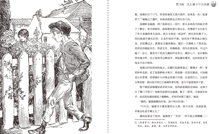《汤姆·索亚历险记》是“企鹅彩绘文学经典”中的一本,是世界著名中篇小说。在一个叫圣彼得堡的小镇上,幼年丧母汤姆生性顽皮,但心地善良,他被他的姨妈收养。但汤姆受不了姨妈的管教和教会学校枯燥无味的生活,幻想过上传说中那样新奇冒险的生活,因而常常逃学闯祸。终于有一天,他与好朋友哈克贝利·费恩来到一个荒岛上,当起了“海盗”,过了几天逍遥自在的生活。他们在无意中目睹了一起凶杀案,关键时刻,汤姆挺身而出,指认了凶手。 但汤姆担心遭到凶手的报复,一直提心吊胆。不久之后,在一次野餐活动中,他与他喜欢的姑娘贝琪?撒切尔在一个岩洞里迷了路,还遇到了隐藏在山洞里的凶手,整整三天三夜饥寒交迫,面临着死亡的威胁。后来终于村民们救出了汤姆和贝琪,坏人被封死在了山洞里,得到了应有的下场。汤姆和哈克贝利再次回到山洞中,找到了凶手埋藏的宝藏。
