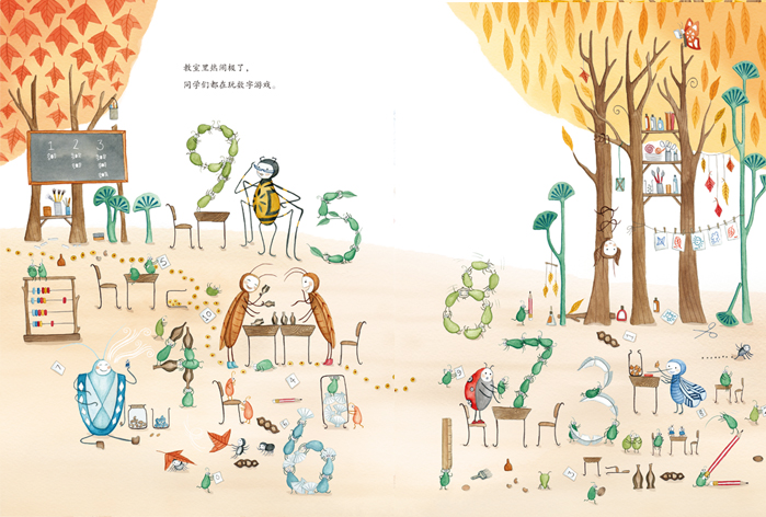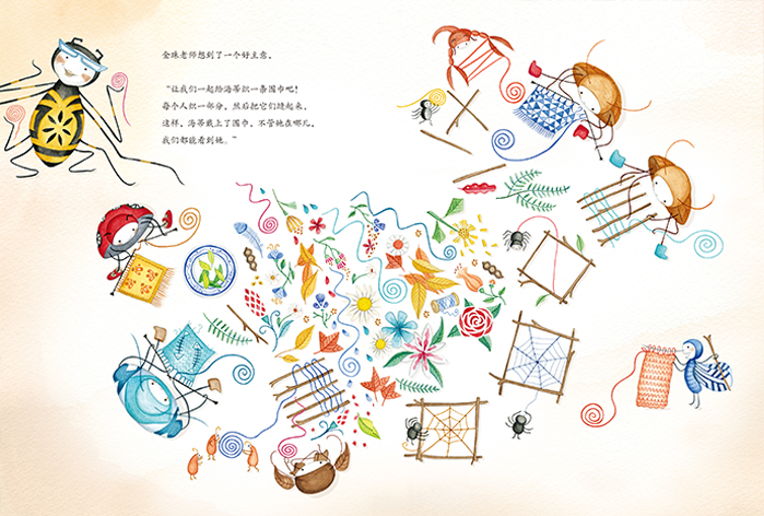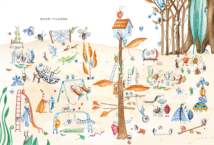 这里有火蚁、狼蛛、圣诞甲虫,有螳螂、赤背蜘蛛、毛毛虫,还有金丝蛛、叶子虫、竹节虫……她们开学啦!新生海蒂是一只竹节虫,长得像一根小树枝,谁也没有看到她。她默默地围绕在同学们的身边,胆怯又孤单……