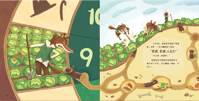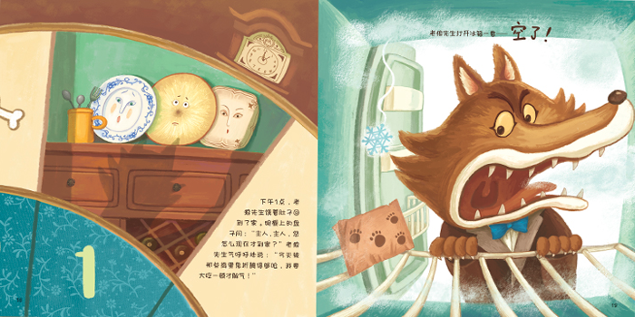老狼先生在童话小镇上开了一家钟表店,虽然他只是个钟表匠,可老狼先生觉得自己是个不折不扣的绅士,聪明、优雅又守时。老狼先生很小的时候,他的爷爷、爸爸都告诉他,每天夜里12点的时候,老狼家族都要出来抓小动物当第二天的午饭,可是倒霉的老狼先生一次都没抓到过任何猎物……