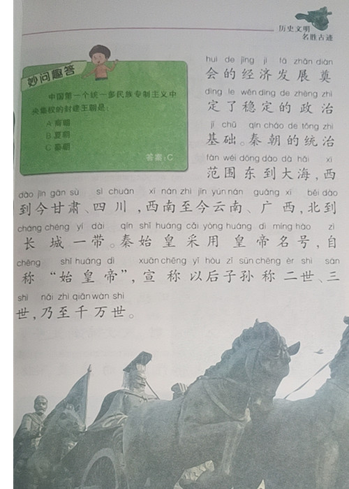地球已经有了40多亿年的历史,人类也走过了漫长的成长旅程,在人类发展的过程中,人类创造了许许多多的辉煌历史和名胜古迹,这些都是人类一代又一代智慧的结晶。了解历史,以历史为鉴,成长自身。那些坐落在地球角落上的名胜古迹的背后都有着一段又一段的苍老悠久的故事。雷锋塔下是否真的有白娘子?峨眉山为什么会被称为佛教圣地?水帘洞,花果山是否真的存在?……这些,都等待着孩子们去了解,去发现。