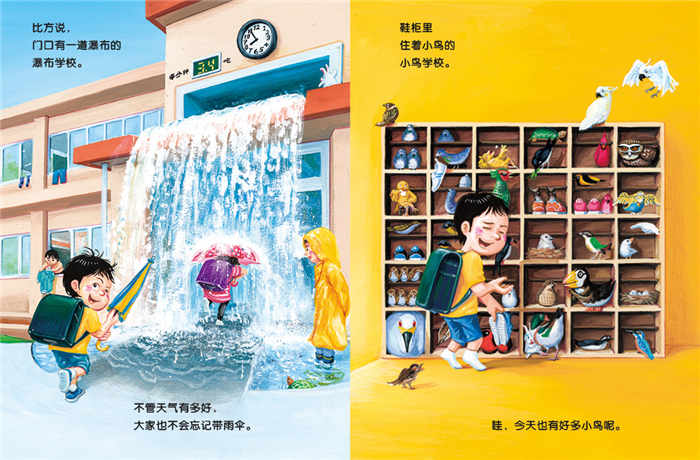 这本书告诉小朋友的是——上学原来是件超好玩的事儿! 哦,是吗?那么无聊的事儿有什么好玩儿的呢? 当然喽,天天去同一个学校,就不能偶尔换个不一样的吗?比如说门口有一道瀑布的瀑布学校,这样就可以天天打伞啦;比如说替身书桌,这样就可以不用做作业了。还有神奇的透明书桌、飞天椅子、章鱼椅子……咦?学生正在给校长上课,可校长突然不见了,这该怎么办? 想象力无敌,开心到爆,还有神秘大追踪,视觉大发现!快来一起进入神奇的学校世界,做个超有趣的白日梦吧!
