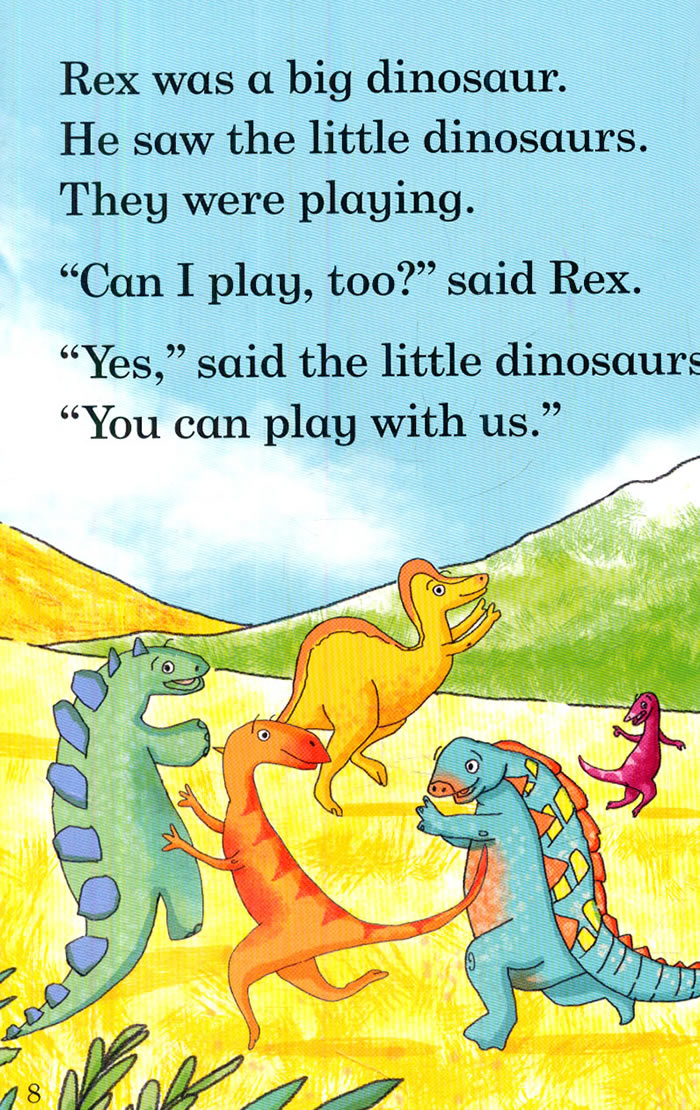 Rex the Big Dinosaur is a Level 1 Read it yourself title,suitable for very early readers who have had some initial reading instruction and are ready to take their first steps in reading real stories.Each story is told very simply,using a small number of frequently repeated words.