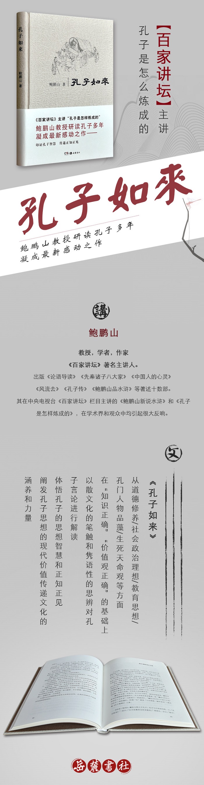 知名学者鲍鹏山教授,研究孔子及先秦诸子学说多年,著述颇夥。本书是鲍鹏山教授研读孔子多年凝成**感动之作,是对孔子理想和情怀、人格与精神的体悟,是一部阐发孔子思想现代价值的**读本。印证孔子智慧,传递正知正见。